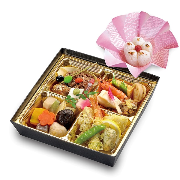 - 可愛らしい容器にご飯が別盛りになった、華やかでボリュームもある、人気の会席料理弁当。お赤飯に変更ご希望の場合は、詳細につきましてお問い合わせくださいませ。