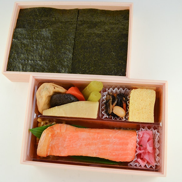 - 海苔の老舗である山形屋海苔店の青とび焼海苔と、かつお節の老舗であるにんべんの本枯鰹節を使用したこだわりの海苔弁当。