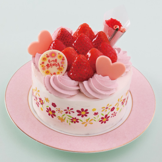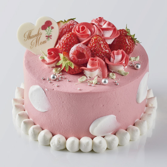 バラに見立てたバタークリームを苺とともに豪華に飾った、母の日限定の可愛らしいデコレーションのショートケーキ。