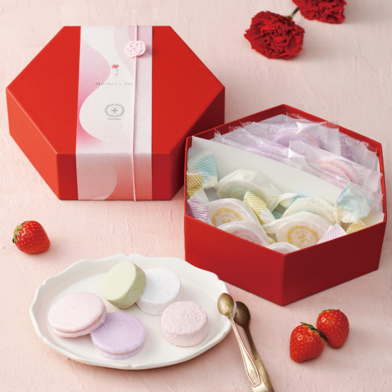 春らしい彩りのふやきにクリームをサンド。お口に入れるとほろほろ溶ける、春のクッキー(ポルボロン)を詰め合わせました。