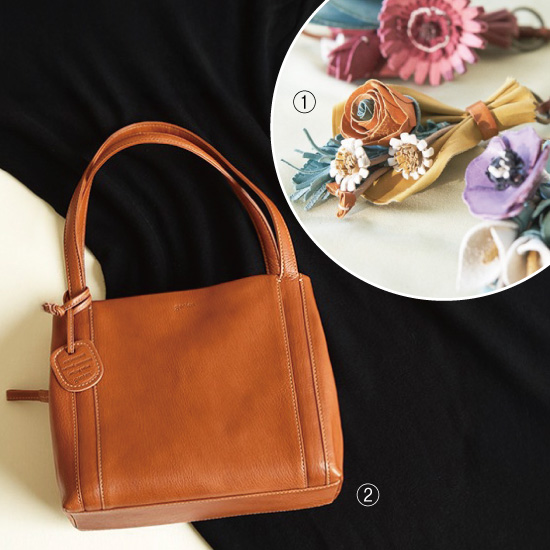 軽くてしなやかなゴート革を使ったトートバッグや、つかい続けるほどに味わいを増す花をデザインしたチャームなど、愛着が生まれる贈りものを。