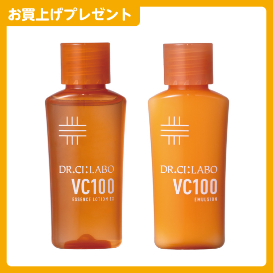 「VC100エッセンスローションEX 14mL」と「VC100エマルジョンEX 14mL」をプレゼントいたします。