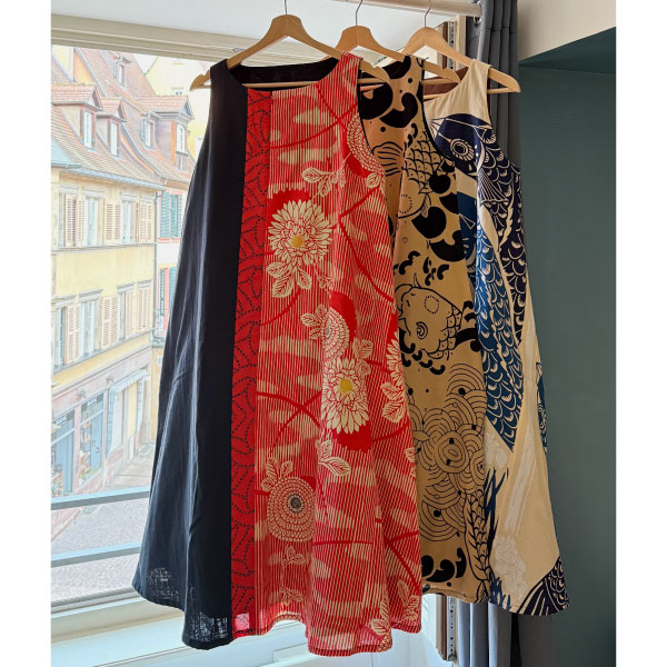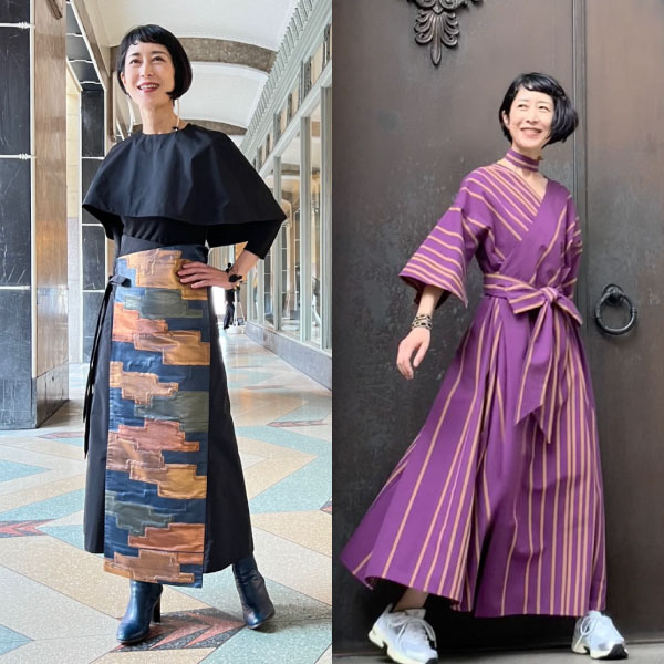 美しいきもの地やゆかた地でつくるカシュクールワンピースをご提案する〈ビビディープ〉と、帯をモダンにアップサイクルする〈オビノビ〉をご紹介します。