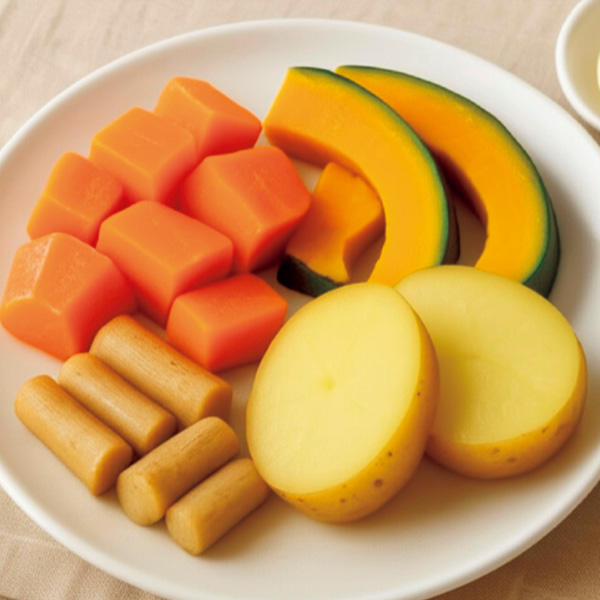 通常は廃棄されてしまう規格外の有機野菜を、長期保存できるようスチーム加工。栄養価を損なわないよう各野菜に適したスチーム温度で過熱し、真空パックにしました。