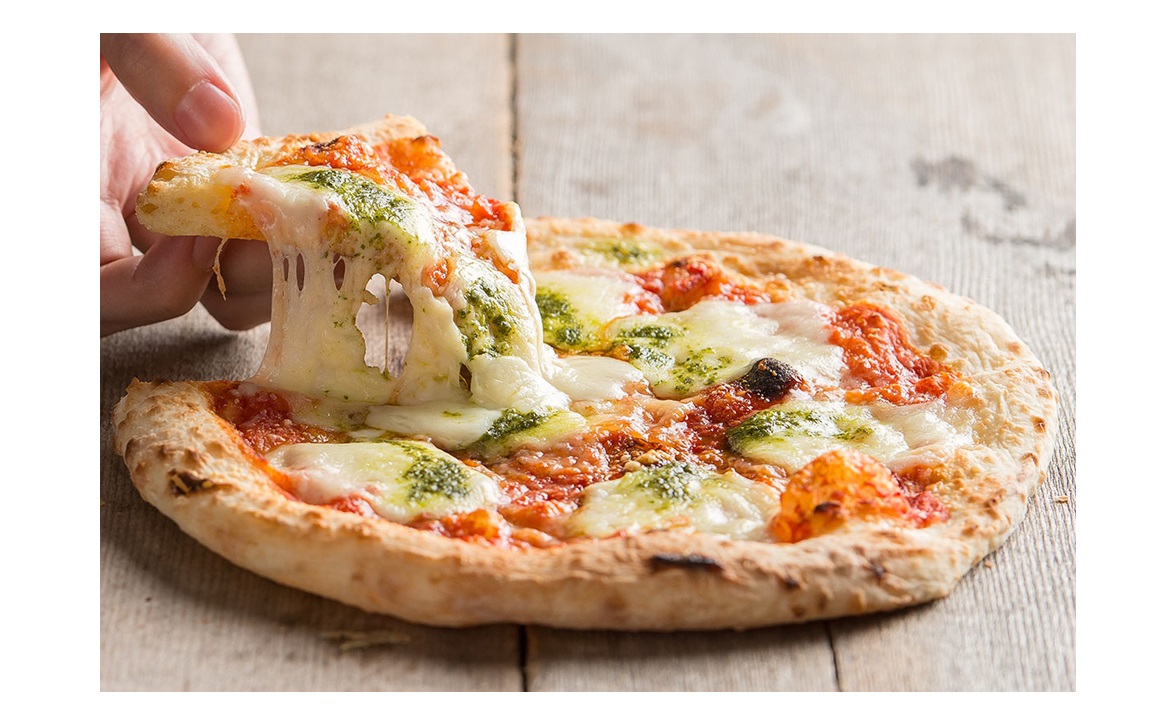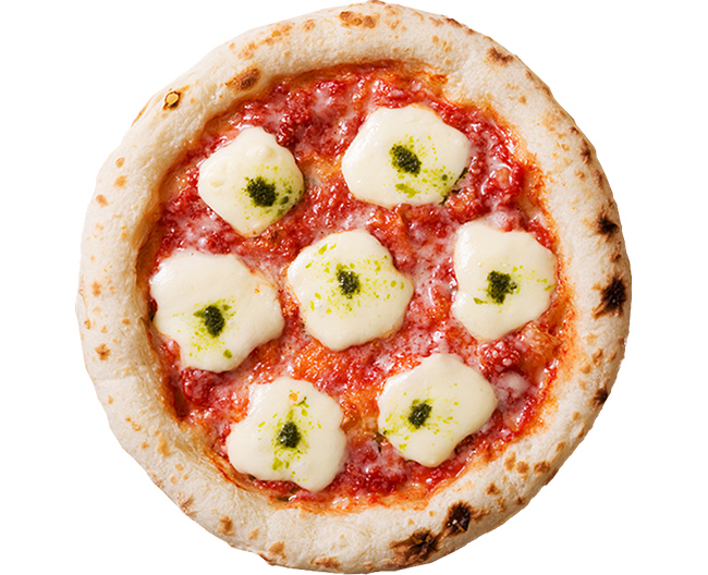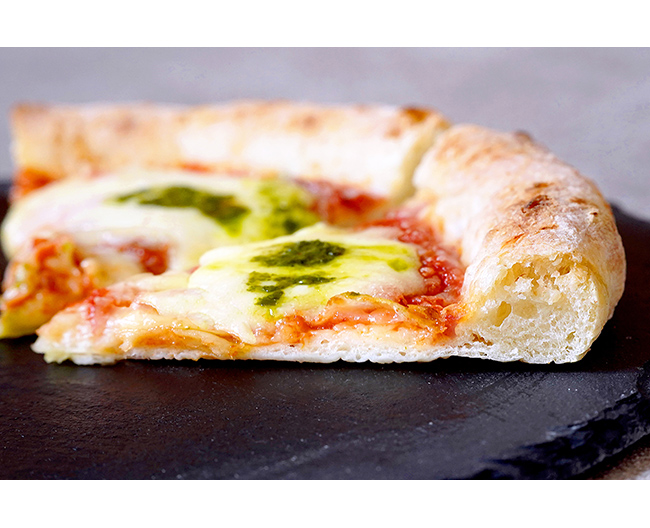高温550度の石窯で焼いたピザを、独自の製法で瞬間冷凍し、焼き立ての風味を そのまま閉じ込め、たっぷりの具材をトッピング。