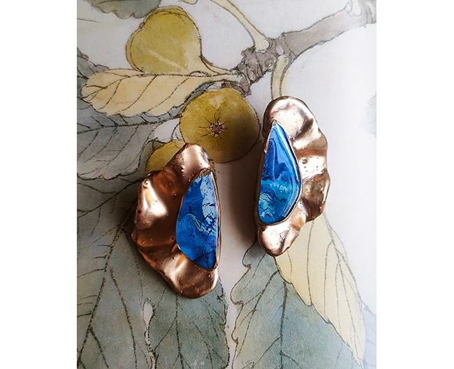 Leon art jewelry は 2019 年に大阪を拠点に活動する 2 人の画家が立ち上げた、絵画技法を応用して作られる、 1点もののアク セサリーブランドです。