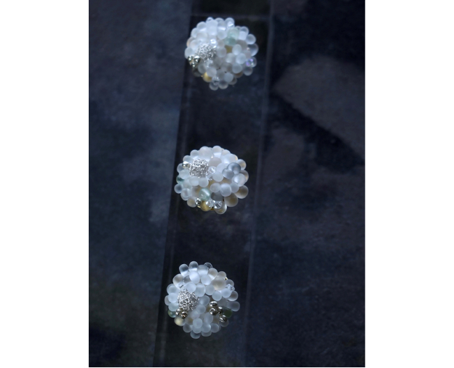 0.1mm~0.2mmのワイヤーを、0.6mmの細いかぎ針で編み、繊細な編み目と軽さにこだわり一つひとつ制作しています。