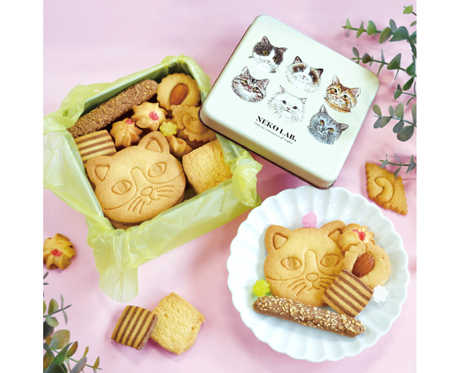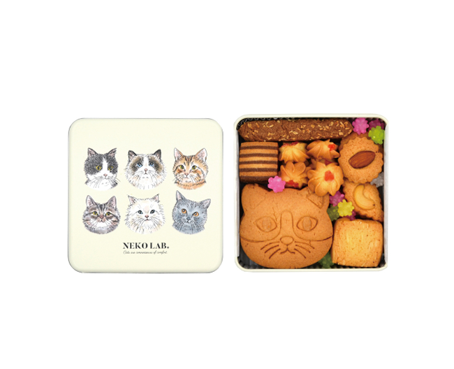 愛らしい猫顔のクッキーはNEKOLABオリジナルのクッキー型で製造。