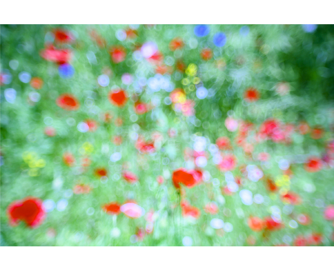 飯田氏は、独自の撮影方法により、花や自然などを被写体とした抽象絵画のような写真作品を制作しています。本来はヒトの目の延長・模倣として設計されたカメラとレンズが、飯田氏の撮影においては制御から解放され、とりまく光そのものを捉える装置へ変貌します。被写体は輪郭を失い、色と光は境界をなくしひとつの存在として画面にたちあらわれます。これらの作品は、見ることの構造を揺さぶり、知覚を超えた世界を捉える新たな喜びへと誘います。