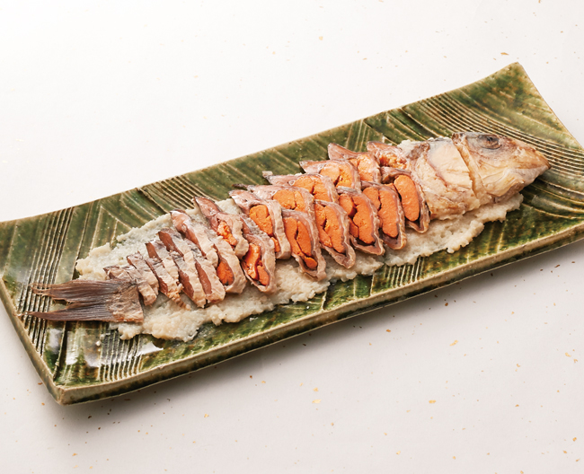蔵持ちの乳酸菌が造る、二冬熟成の鮒寿しです。