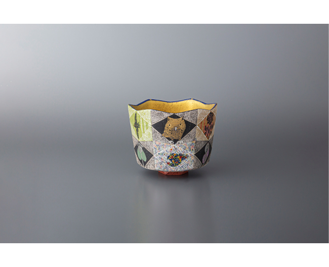 「釉刻色絵金銀彩茶盌 」 H9.7×φ12.3cm 陶