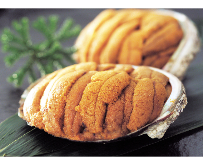 三陸産の生うにをアワビの殻に盛り付けて焼いた郷土料理です。
