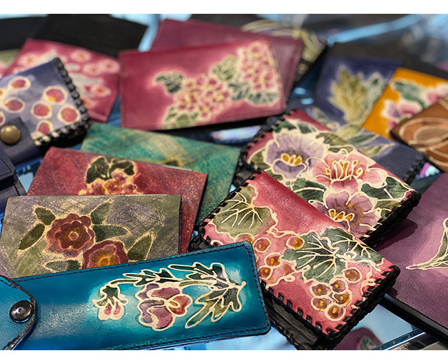 ”愛染屋”大河平敬子による革ろうけつ染め小物の作品展です。