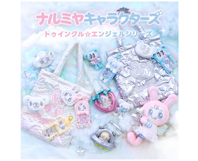 ホワイトを基調に、パステルカラーやラメ、オーロラ素材をアクセントにした、トレンド感たっぷりのエンジェルコアデザインが特徴の懐かしの[ナルミヤ]ジュニアキャラクターズグッズの限定販売です。