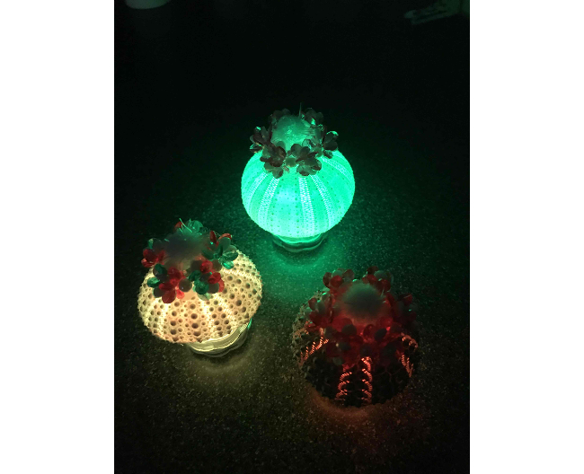 ウニの殻でできたバスキャンドルは、お風呂に浮かべライトを灯すと、レースのような自然の美しさに癒されます。