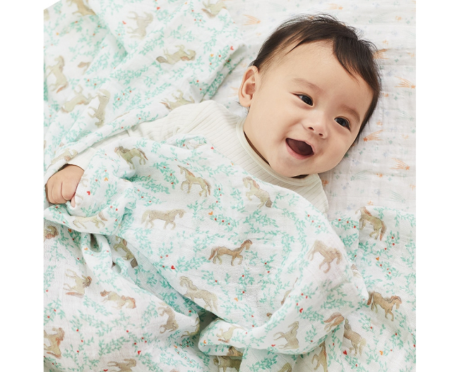 aden + anais(エイデンアンドアネイ)を代表するスワドルは、ダブルガーゼの柔らかさが魅力。