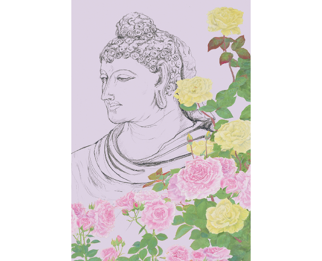 薄い彩を重ね画質に厚みを出す技法に、今展覧会では、ガンダーラ仏を通して改めて出会った薔薇をモチーフに、根源的美意識を追求した新作を中心に発表。大作から小品・デッサンまで、約30点を出品いたします。