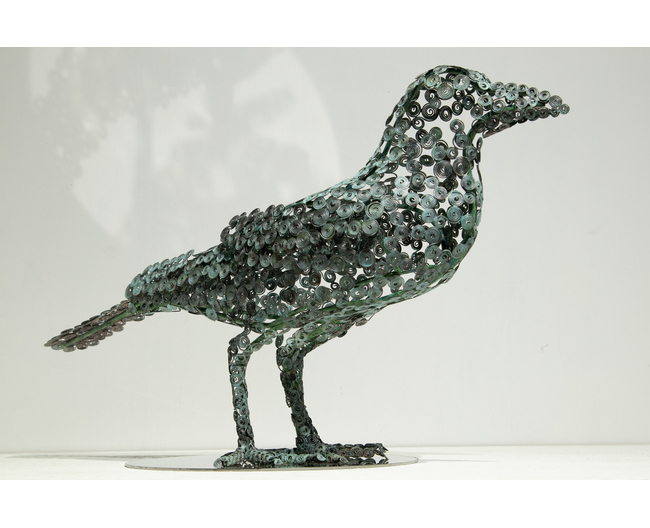 渦を巻いた銅線から生み出される造形は金属でありながらも、空気を含んだ柔らかな印象を与え、周りの空間を取り巻きます。