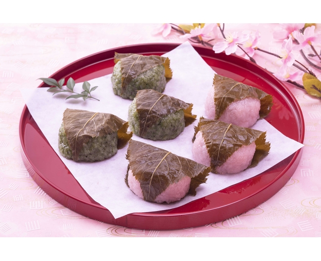 お米の食感が残るつぶつぶとした皮でこしあんを包み込み、桜葉の塩漬けを巻き、道明寺風に仕上げました。
