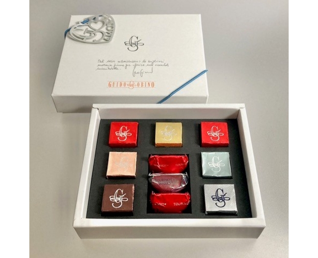 トリノ本店の人気商品を厳選した10粒入りアソートセット。ヘーゼルナッツと高品質カカオを使用したジャンドゥーヤから作り出す「トリノット」はまさに至福の一粒。「トリノットマキシモ」はヘーゼルナッツの分量を増やすことによってさらに濃厚な味わいを楽しめます。人気のクレミーノシリーズには海塩とオリーブオイルを使用した「アル・サーレ」、コーヒー豆を粗挽きし、本場のカプチーノを再現した「アル・カプチーノ」、ヘーゼルナッツ好きにはたまらないヘーゼルクリームをサンドした「クラシコ」、濃厚なジャンドゥーヤにビターでアクセントを入れた「フォンデンテ」、海塩を使いキャラメルをイタリア風にアレンジした「アル・カラメッロ」、日本限定商品「ドッピョストラート」は下層にビタージャンドゥーヤを使用し、上層はホワイトチョコレートの中にキャラメッラートされたヘーゼルナッツをちりばめ大人のチョコレートに仕上げました。10粒入りアソートセット。