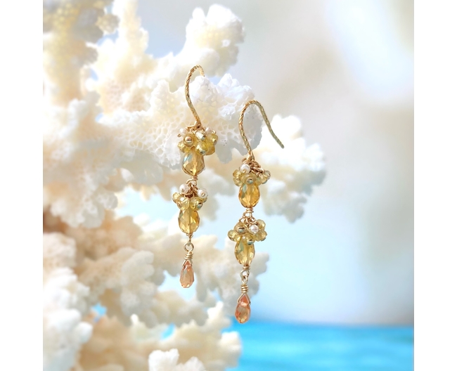 『ガウディ』コレクションのピアス。サグラダファミリアのイエローカラーのステンドグラスをイメージしたアイテムです。