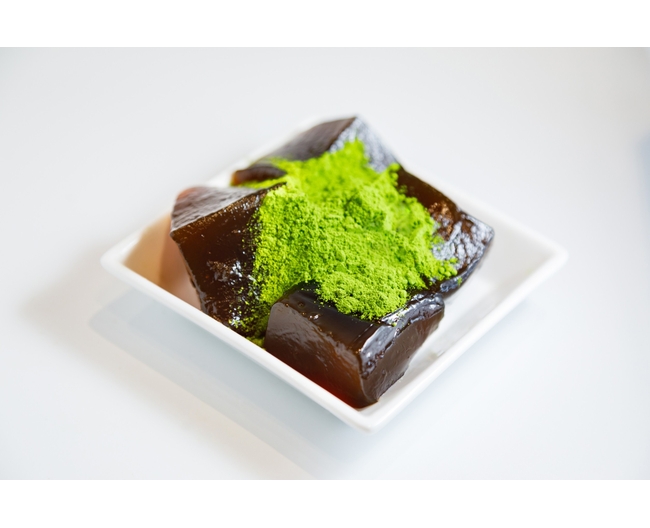 黒糖のやさしい甘みと、抹茶のほろ苦さが織りなす上品な味わいの黒糖抹茶わらび餅。
