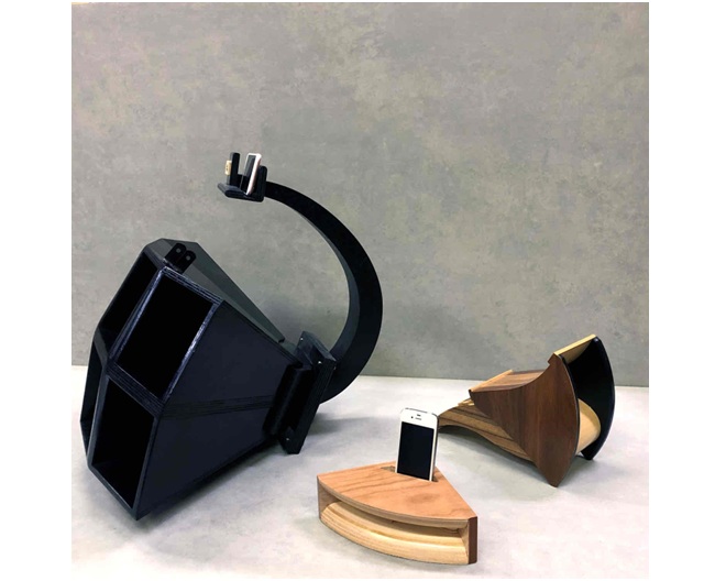 木の自然な響きを活かしたスピーカー作品と、瑞々しい色彩表現による絵画作品をご紹介いたします。