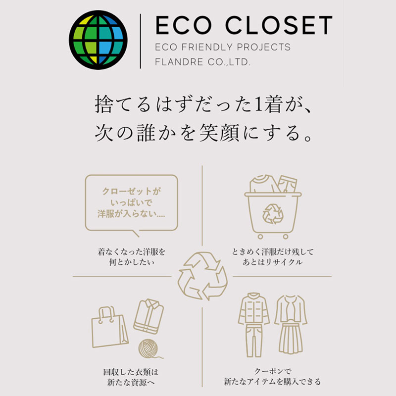ご不要になった衣料品をご持参で、1着につき1枚、当日から使える1,000円クーポンにお引き替えいたします。フランドル製品以外の衣料品でも回収いたします。