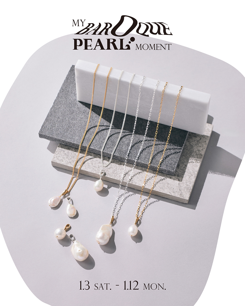 お好きなバロックパールと、長さ・カラーを2種類から選べるチェーンを自由に組み合わせてお作りいただけます。