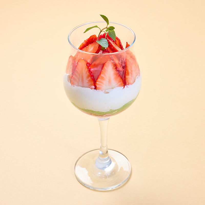 紅ほっぺとやわらか抹茶杏仁豆腐のチャイナパフェ