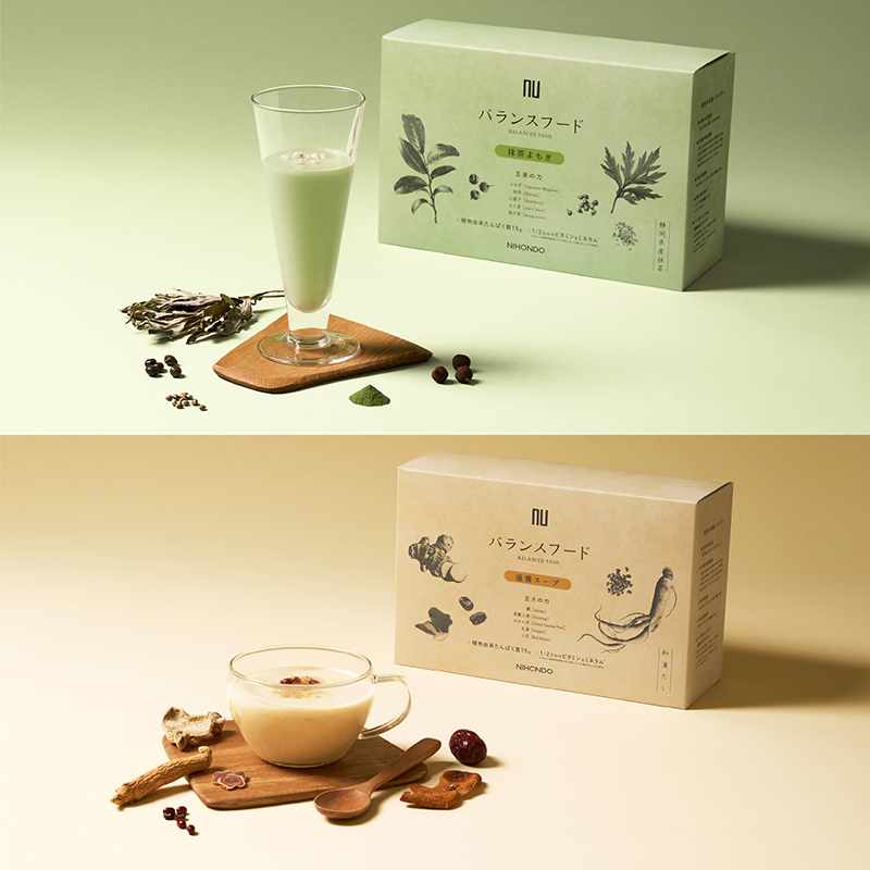 「バランスフード」は、日本の伝統食の知恵をもとに、東洋で健康によいとされる和漢食材や雑穀類、豆類などをブレンドした栄養サポートドリンク。