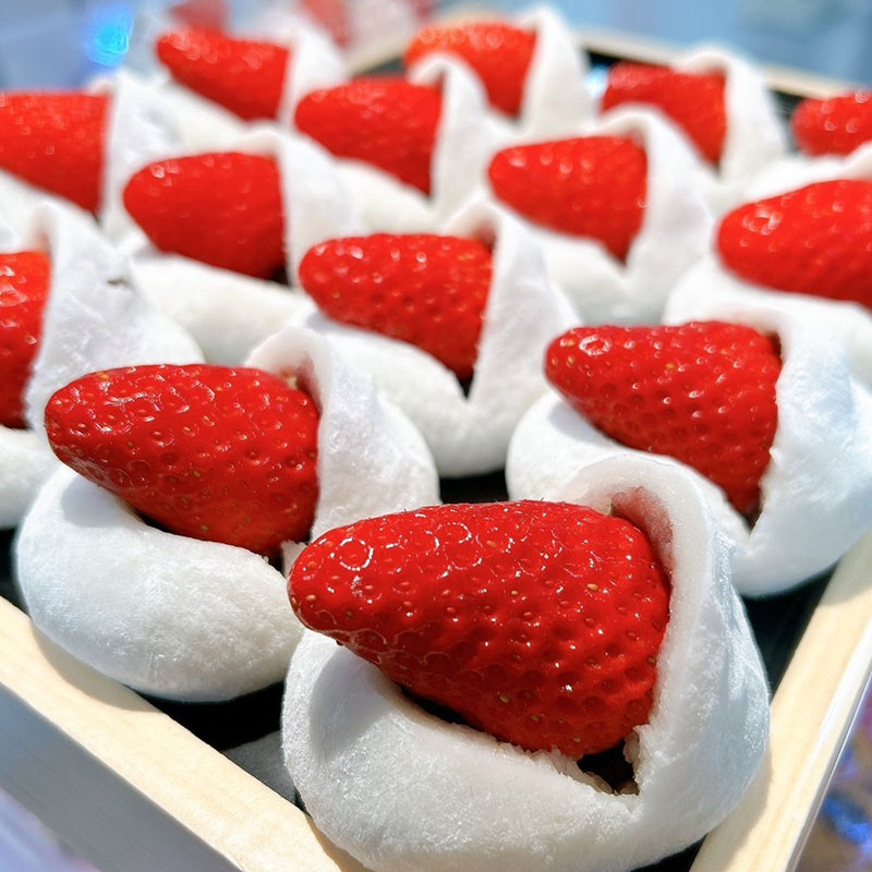 なめらかな口あたりと、しっとりとしたやさしい食感をお楽しみいただける「羽二重大福」。羽二重大福のやわらかな甘さとよく合う、愛知県産の紅ほっぺを使用した「苺大福」など、定番の人気商品をご用意。