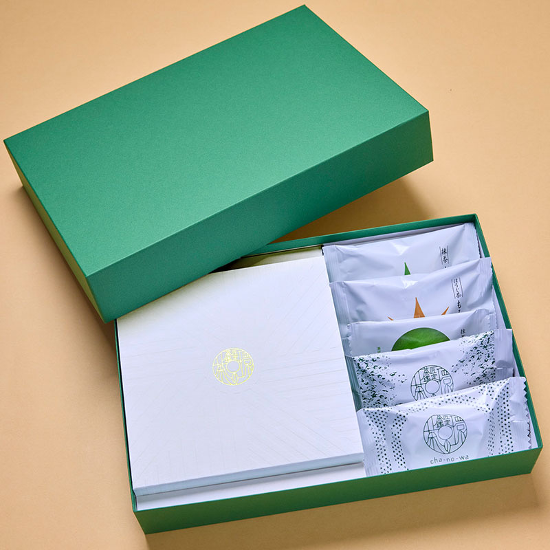 茶の環の看板商品、しっとり食感抹茶バターケーキと人気の和洋菓子が5種類入った日本橋高島屋店限定のギフトセット。