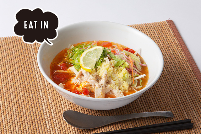 国産米100%の麺を使用したフォー専門店。スパイシーなチリトマトスープのフォーは、旨味と辛味のバランスがちょうどよい1辛、ハバネロで辛味をプラスした2辛、3辛まで、辛さの段階が選べます。チーズを入れるとまろやかに。