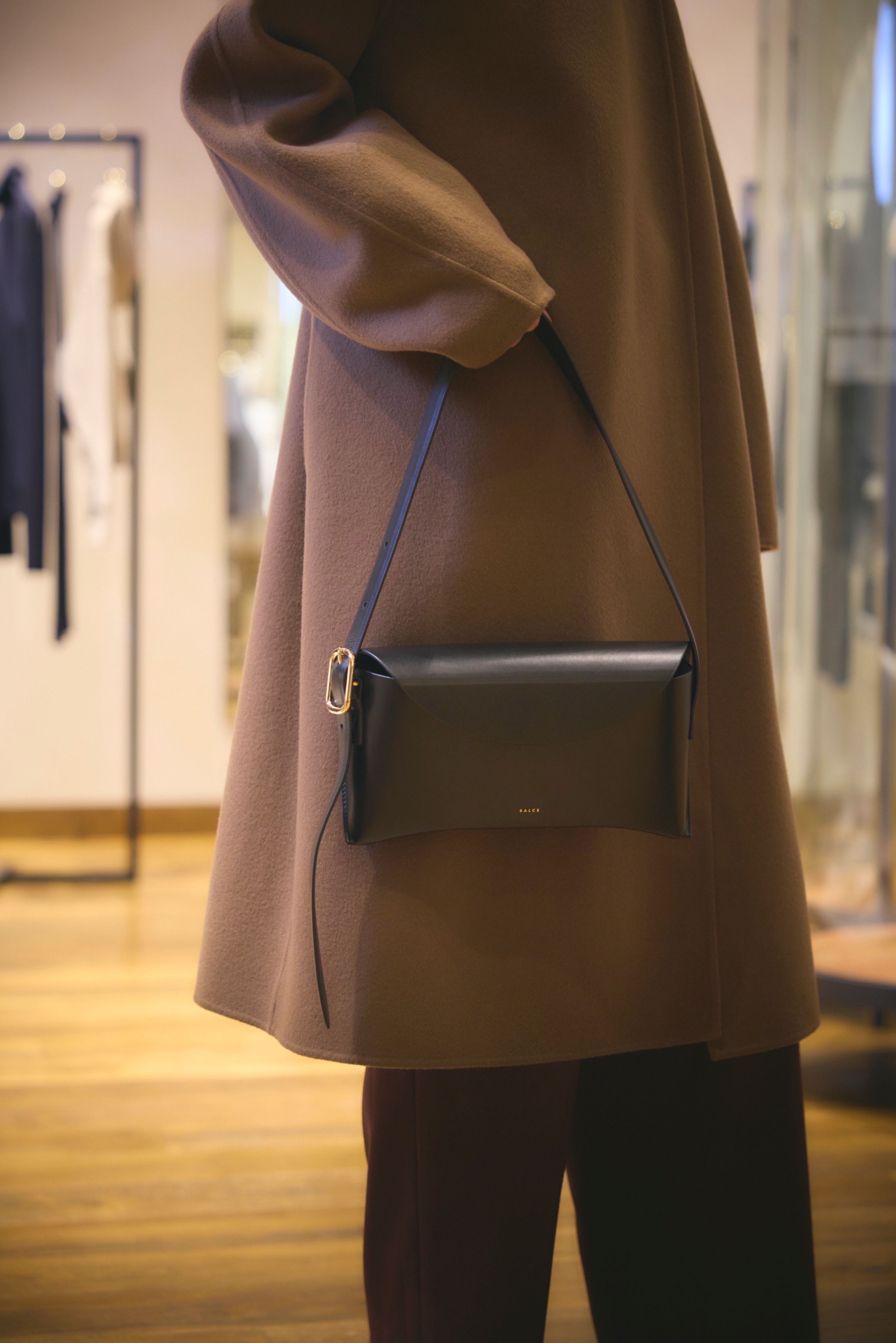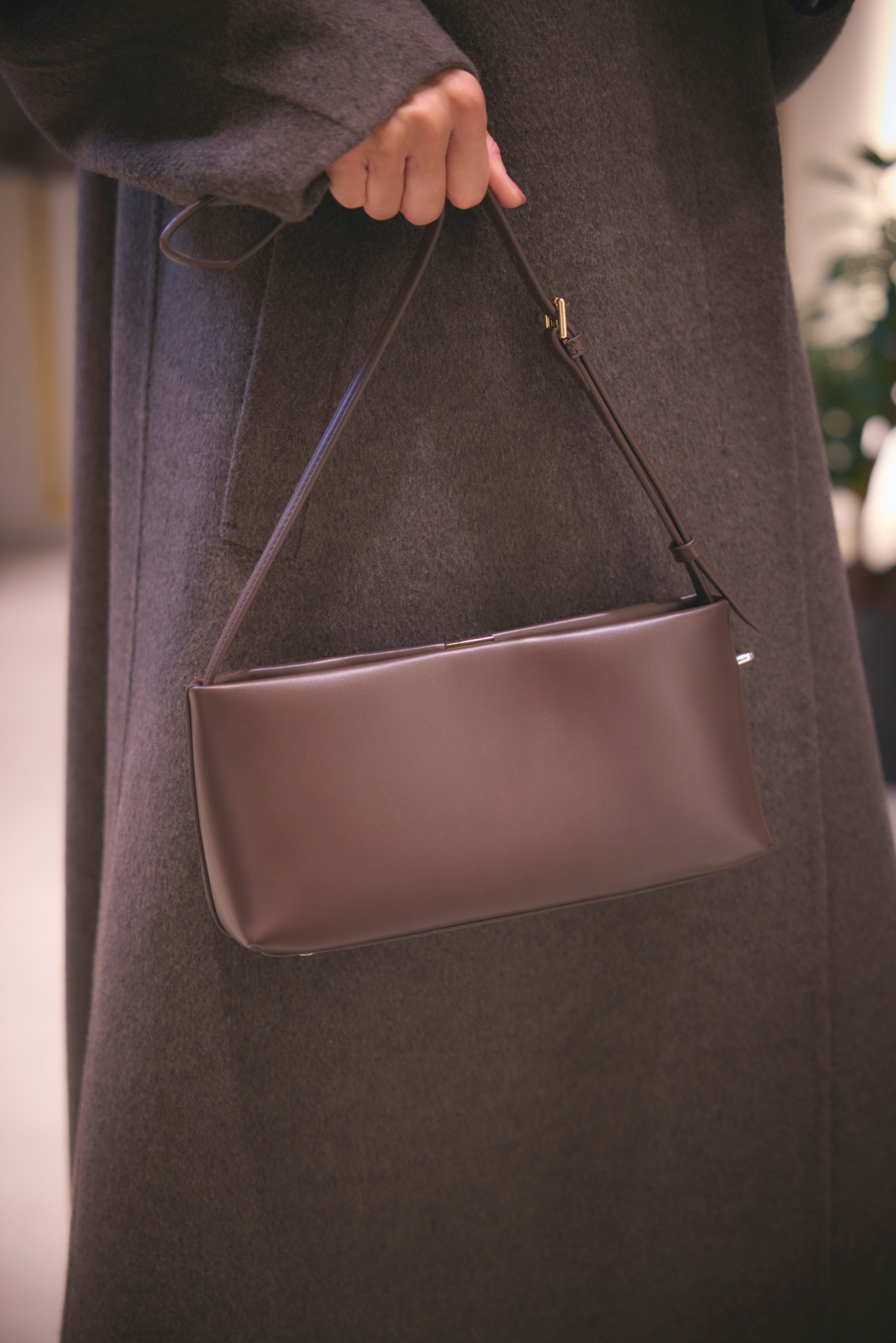 バッグは特徴的なマクロバックル付きの調節可能なショルダーストラップで、装いに合わせて長さを自在に変えるのがポイント。