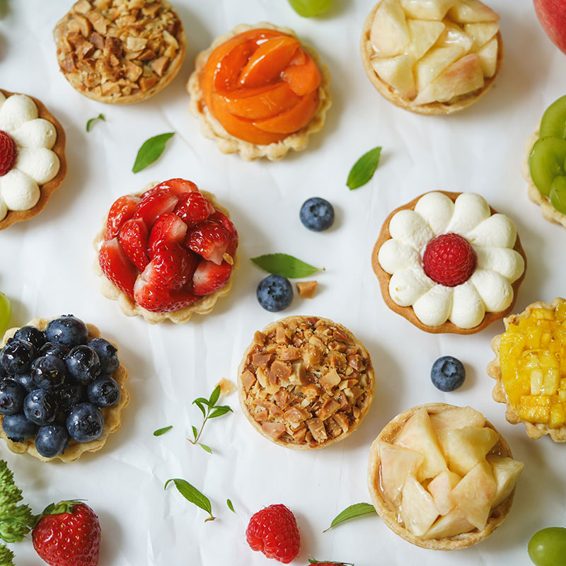 ニット帽みたいなクリームが目印!気軽に食べられる、ひとくちサイズのタルト・ビーニーをはじめ、旬のフルーツを使用したタルトや季節限定の商品など、心を込めてご用意しております。