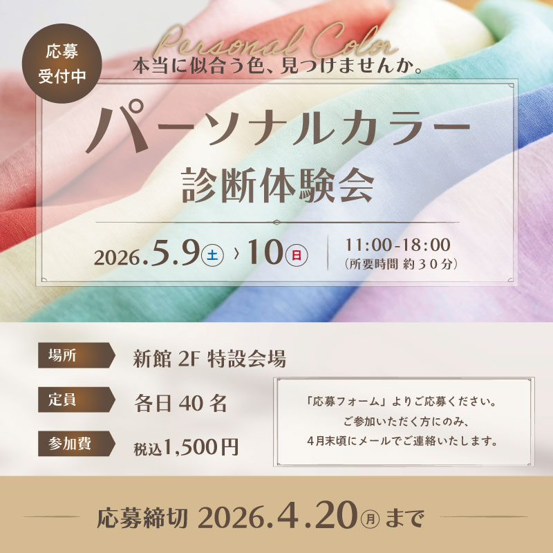 ※4月3日(金)~5月10日(日)に、日本橋高島屋S.C. 新館 専門店の対象店舗にて税込3,000円以上お買上げいただいたレシートを当日ご提示で、500円ご優待いたします。対象店舗は、下記よりご確認ください。