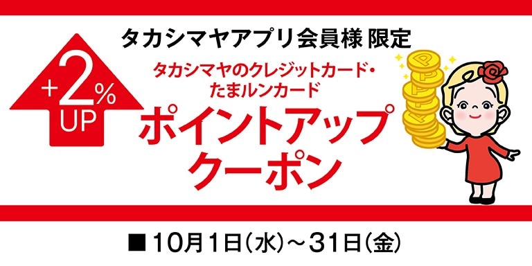 ※高島屋オンラインストア、高島屋コスメサイト「TBEAUT」、タカシマヤファッションスクエア、高島屋ローズキッチン、タカシマヤ通信販売はポイント対象外となります。