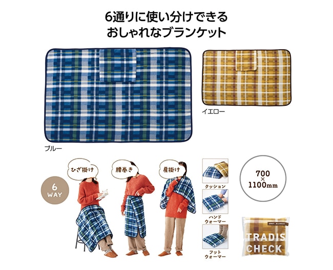 会期中、「冬のファッションバザール」会場にて、税込5,500円以上お買上げのお客様に「トラディスチェック 6WAYブランケット」をプレゼントいたします。
