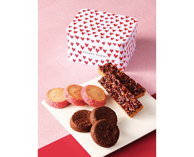 3種のサブレを数えきれないほどのハートが描かれた愛らしい限定缶に詰め合わせました。