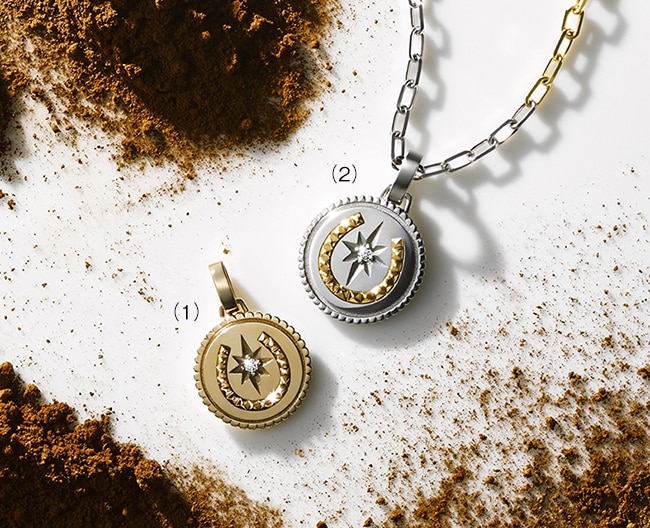2026年の干支「午」にちなんだホースシューをデザインしたコインチャーム。中心に配したダイヤモンドの輝きを閉じ込めた幸運を呼ぶジュエリー!