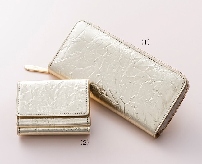 華やかでゴージャスな雰囲気のゴールド財布。ラグジュアリーな輝きは、明るい雰囲気に。風水では金運アップが期待されており、ますます魅力的!