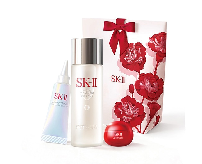 母の日ギフトで人気の高いスキンケア、日本限定スペシャルキット。化粧水・美容液・クリーム、〈SK-II〉No.1を箱に詰めた、トライアルセット。