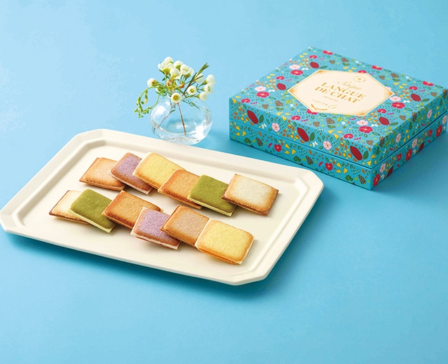 白い恋人の〈ISHIYA〉がご提案するギフト向けスウィーツブランドが期間限定で登場。6種の様々な味わいのチョコレートを色とりどりのラング・ド・シャでサンドしました。