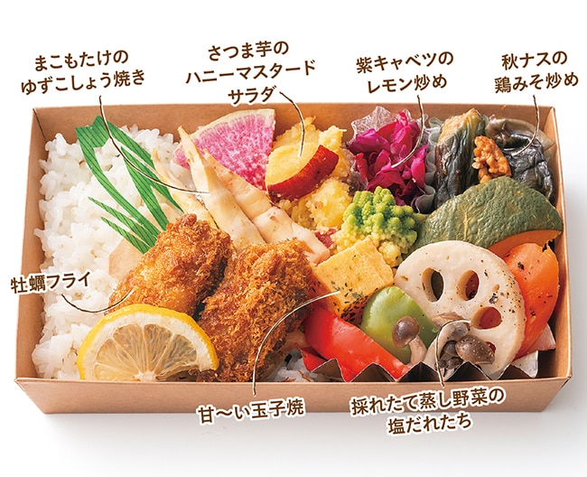 牡蠣フライ、まこもたけのゆずこしょう焼きのほか地元野菜たっぷりの新メニューが登場しました。