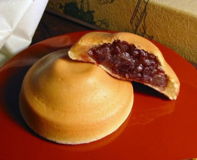 阿闍梨餅は糯米と卵と砂糖を合わせて皮にし、粒あんを入れています。餡の入っているところが少し盛りあがっており、あっさりした甘さでむっちりとした歯ごたえが何ともいえず美味しい京都を代表する銘菓です。