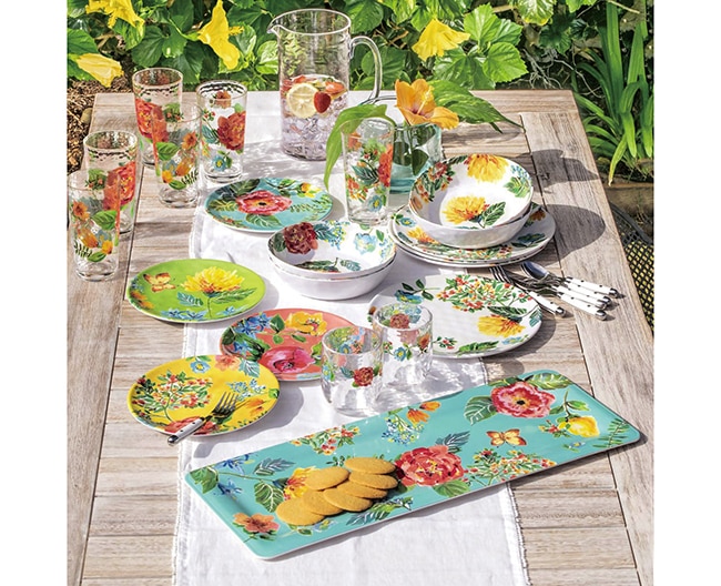華やかな“ガーデンフローラル”シリーズ。軽くて割れにくく、ガーデン パーティーなどにおすすめ。