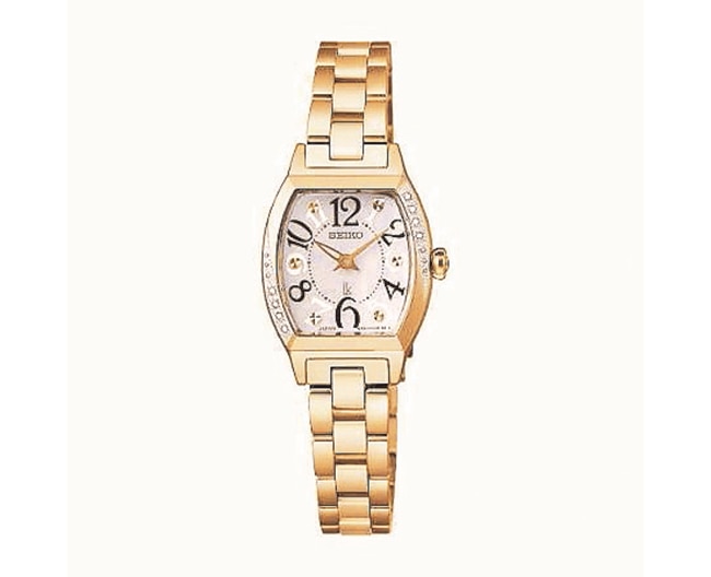 ダイヤモンドの輝きを纏うジュエリーのようなミニデザインサイズ。ダイヤルには白蝶貝を使用し、コロンとした丸いフォルムが特徴。