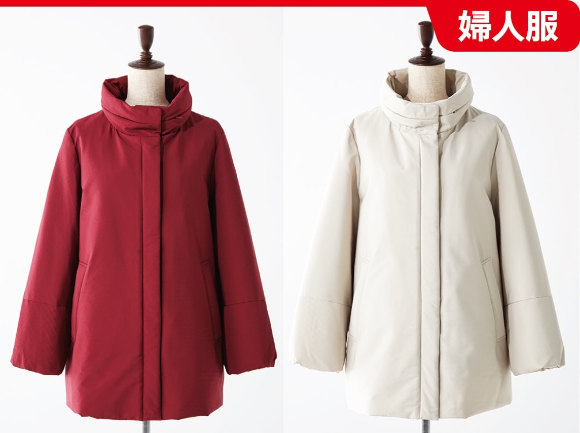 [ピエール・カルダン シーニュ]ボーダージャカードダウン(ライトベージュ、ワイン) 各22,000円〈10点限り〉