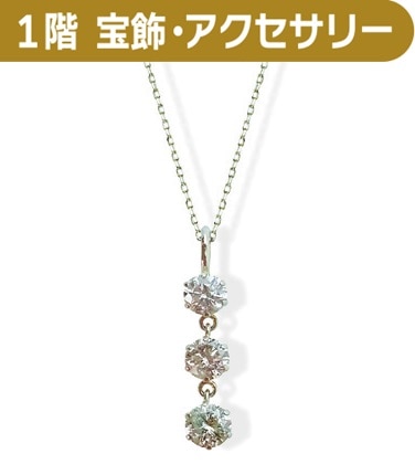 [フェッリーニ]スリーストーンダイヤモンドペンダント(チェーン:K10・長さ約42cm、トップ:K18・ダイヤモンド0.5ct) 132,000円〈2点限り〉